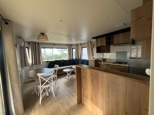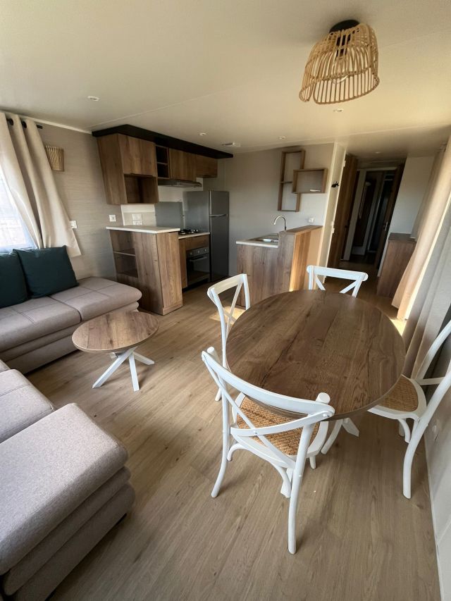 Ce mobil-home tout confort comprend 2 chambres, une climatisation réversible et une grande terrasse d'angle pour profiter pleinement du panorama. Parfait pour vos vacances ou comme résidence secondaire, ce bien neuf allie modernité, confort et cadre