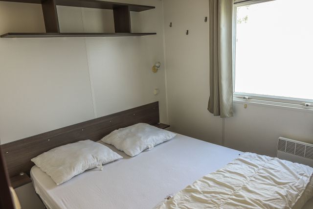 - Une chambre principale avec un lit double ainsi que des rangements.