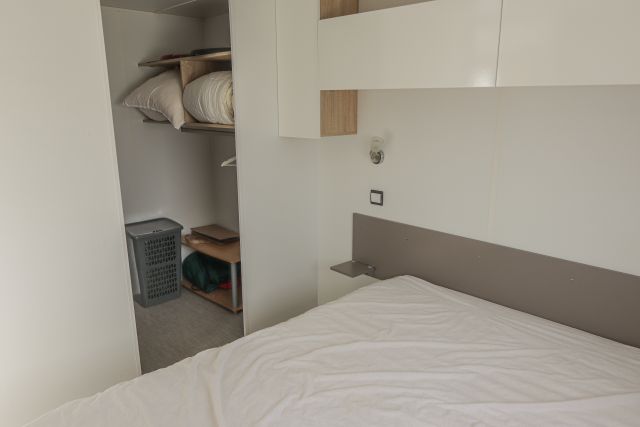 - Une seconde chambre avec un lit double, un miroir mural, ainsi que des rangements.