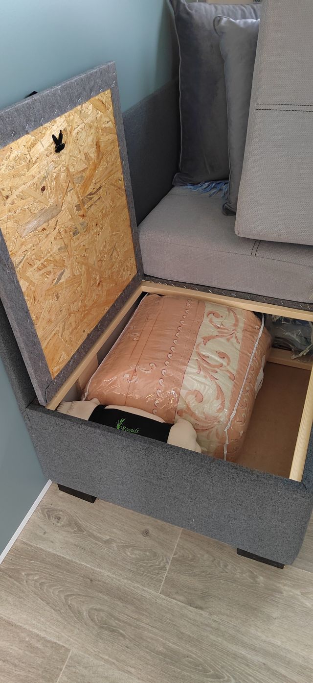 - Grand séjour cuisine avec canapé convertible (revêtement velours) comprenant grand coffre de rangement. Plaque de cuisson gaz 4 feux, réfrigérateur-congélateur, four, téléviseur, table et 4 chaises. Table basse. Grand placard avec étagères. Chauffe-eau électrique sous évier inox.